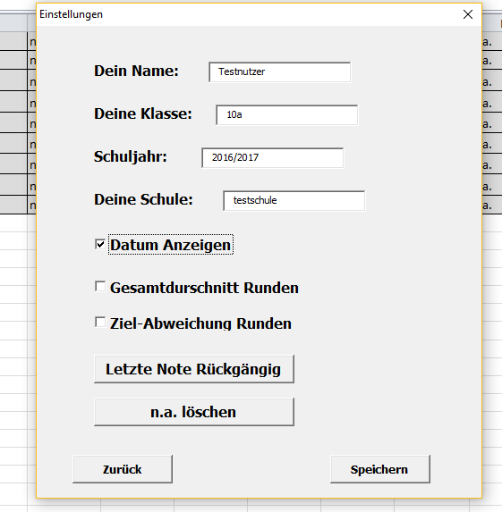 Das Excel Tool Noten-Übersicht hilft dir dabei deine Noten einfach und übersichtlich in eine Tabelle einzutragen. Die Tabelle und Ansicht kannst du beim Öffnen in einem Setup einstellen um z.B. Farbe oder Fächer an deine Vorstellungen anzupassen. Das Programm errechnet nebenbei noch in einem Scoreboard an der Seite viele Werte wie z.b den Durchschnitt oder die beste Note. Durch ein Warnsystem merkst du, wenn du das Klassenziel oder dein Ziel nicht erreichen würdest und bekommst ausgerechnet, welche Note du im nächsten Test benötigst.